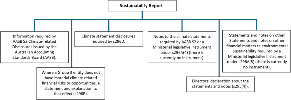 AASB S2 Climate-related Disclosures is mandatory for sustainability reporting under the Act. AASB S1 General Requirements for Disclosure of Sustainability-related Financial Information is voluntary. AASB S2 includes those parts of AASB S1 relevant to climate disclosures.