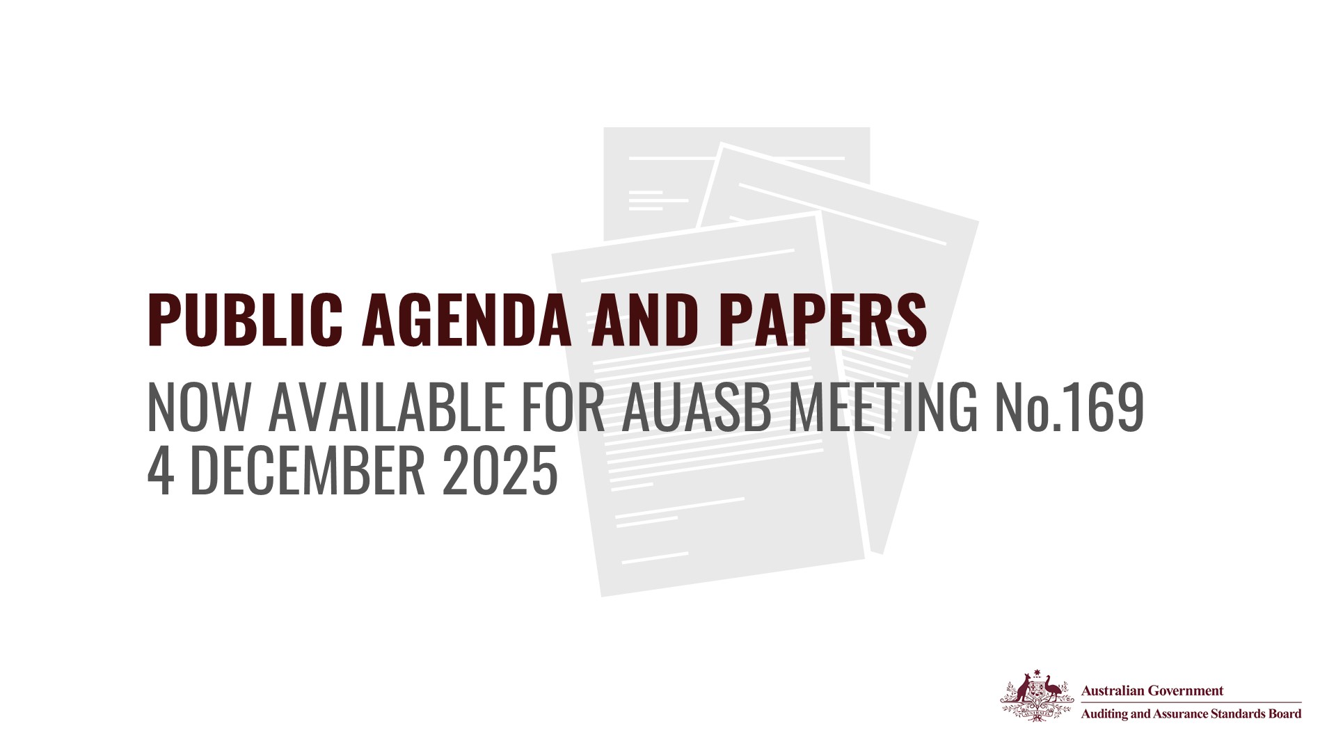 The Public Agenda and Papers are now available for AUASB virtual meeting 169 to be held on Thursday 4 December 2025.
