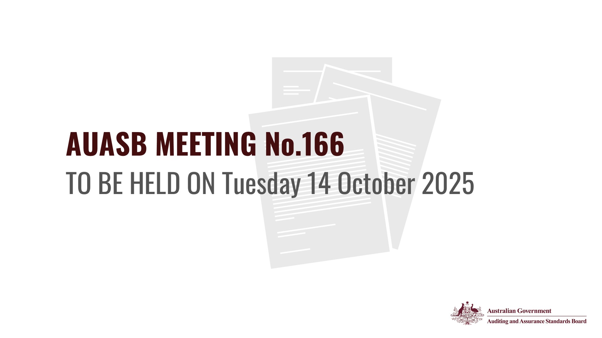 AUASB in-person board meeting 166 to be held on Tuesday 14 October 2025. Public papers and Agenda to be posted closer to the date.